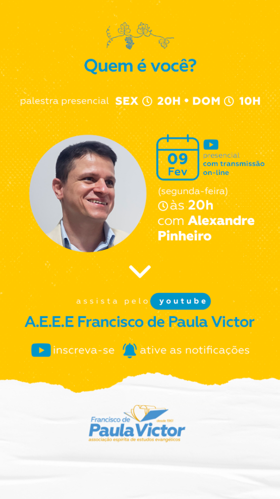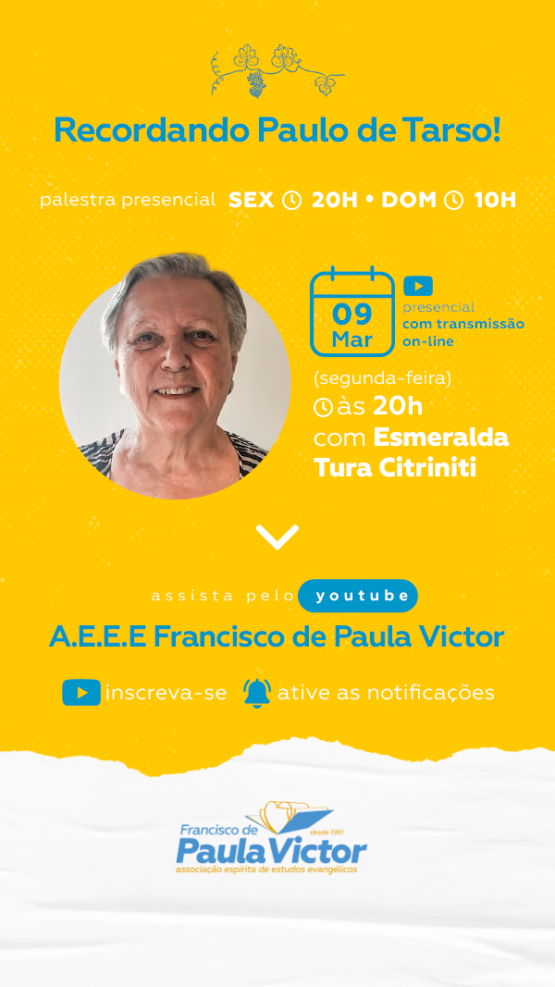 Palestra sexta (20h, presencial), domingo (10h, presencial) e segunda (20h, presencial e on-line pelo youtube),…
